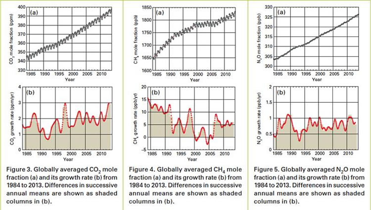 Here’s a topical story from the BBC website about a new report by the World Meteorological Organization (WMO), which alerts readers to a record level of greenhouse gases in the atmosphere in oceans (see the charts below). What interested me more than the story itself, however, was an interesting exchange in the comments section. Here’s the exchange: