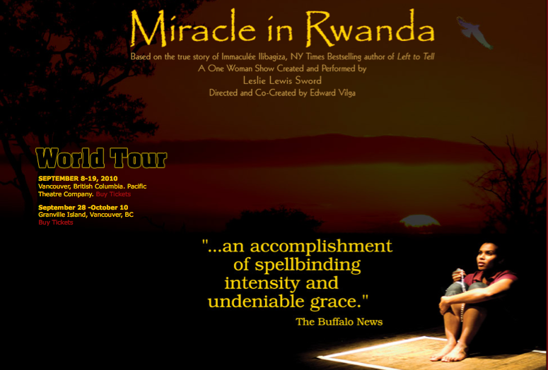 Update: The website I linked to above links to the wrong page. Miracle in Rwanda is part of this year’s Vancouver Fringe Festival. Here’s the correct link to information regarding show times and tickets.